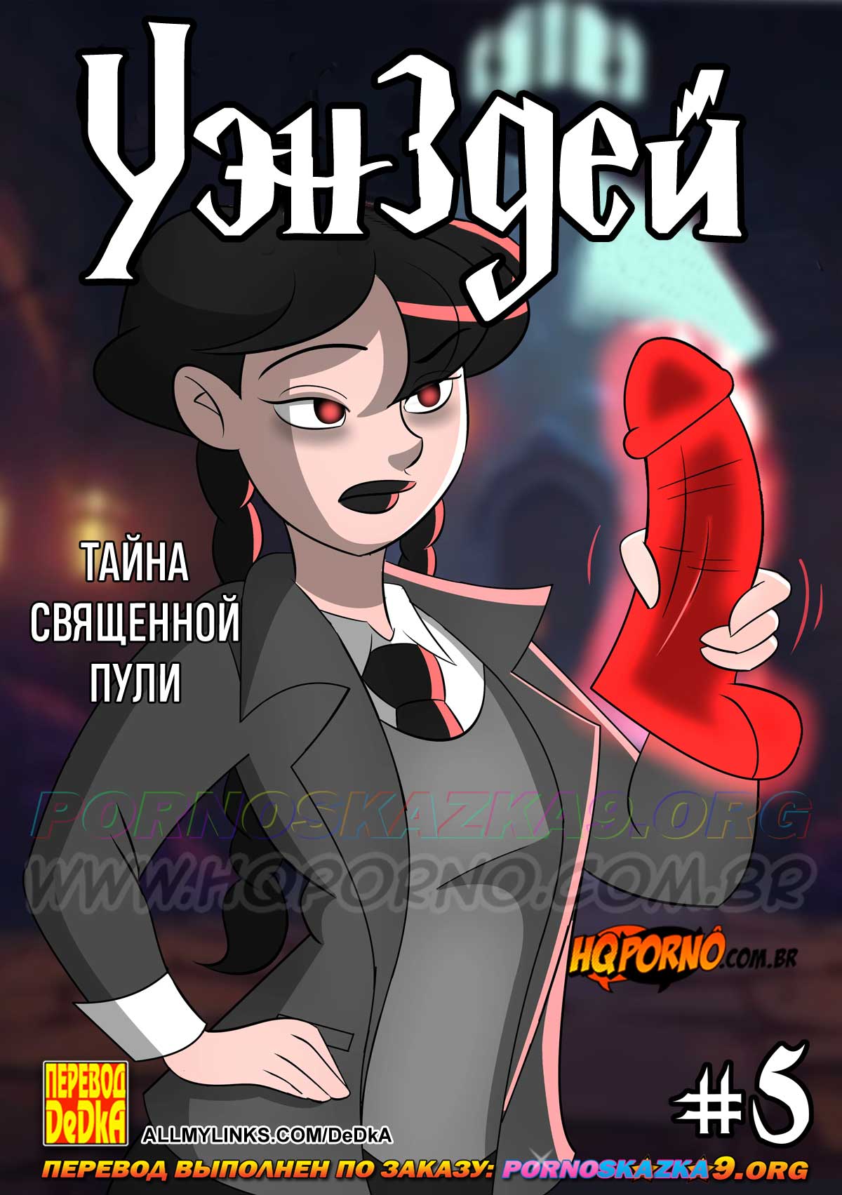 Читать далее 04 Дек 2025 14788 0Порно комикс «Уэнздей. Часть 5. Тайна священной пули.»